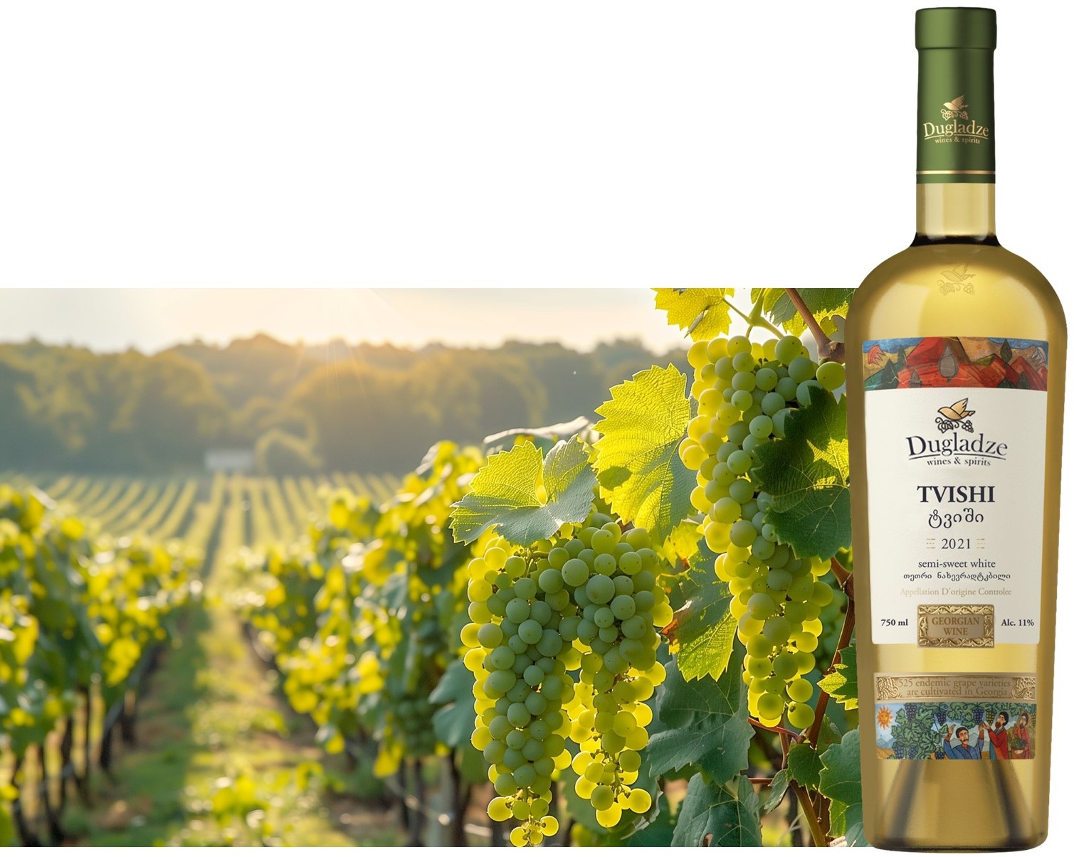 ტვიში - თეთრი ნახევრადტკბილი ღვინო. „ტვიში“ ხასიათდება ღია ჩალისფერიდან ჩალისფერამდე შეფერვით, ნაზი ჰარმონიული გემოთი, ხილის ტონებით, ჯიშური არომატით და სასიამოვნო სიტკბოთი.